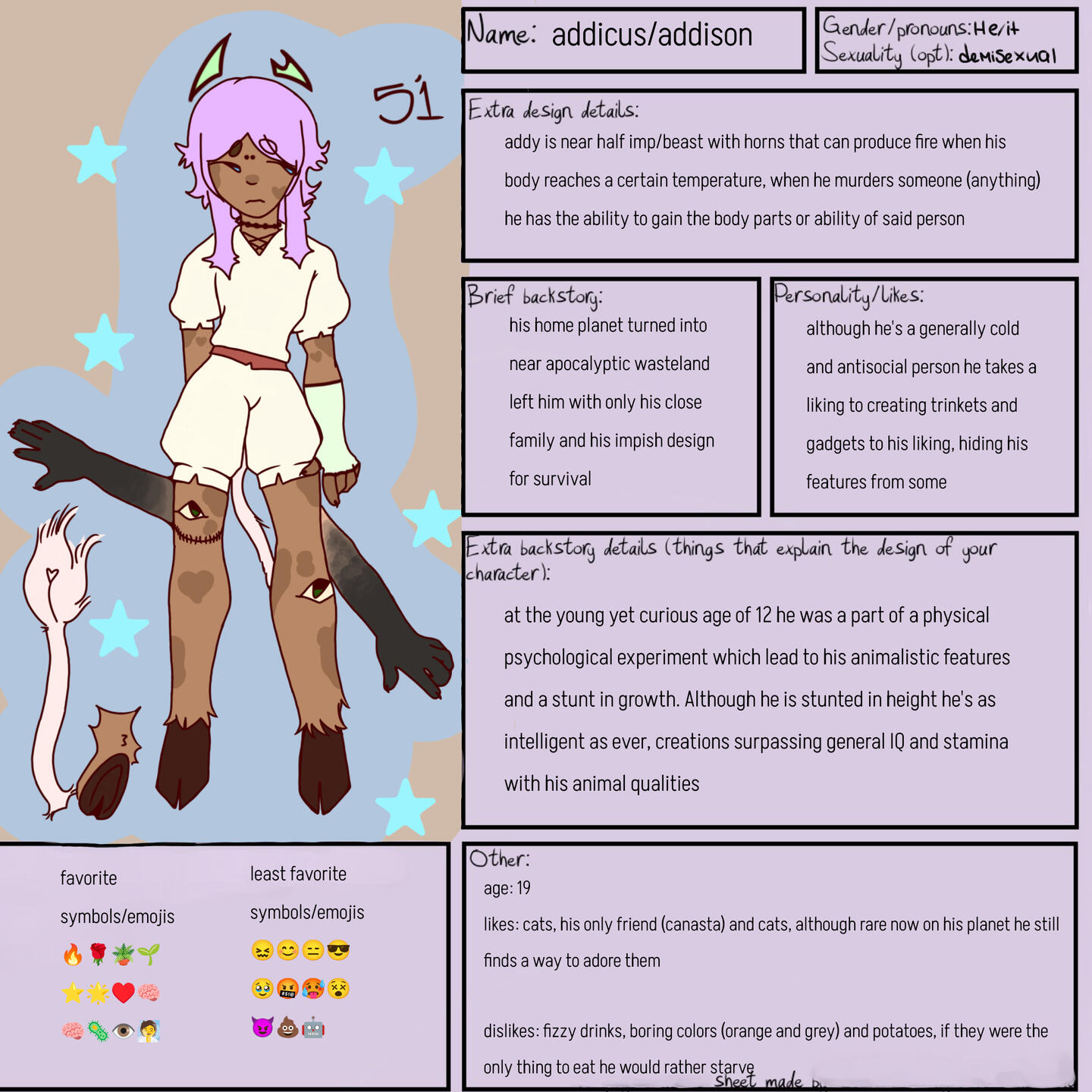 about me ; I'm a small artist who does art for fun and inspiration, sometimes money (which is why I have comms open ⭐) I use this money for things like rent, other bills, groceries and animal food so any and all support helps as a small artist, I'll be doing physical items soon