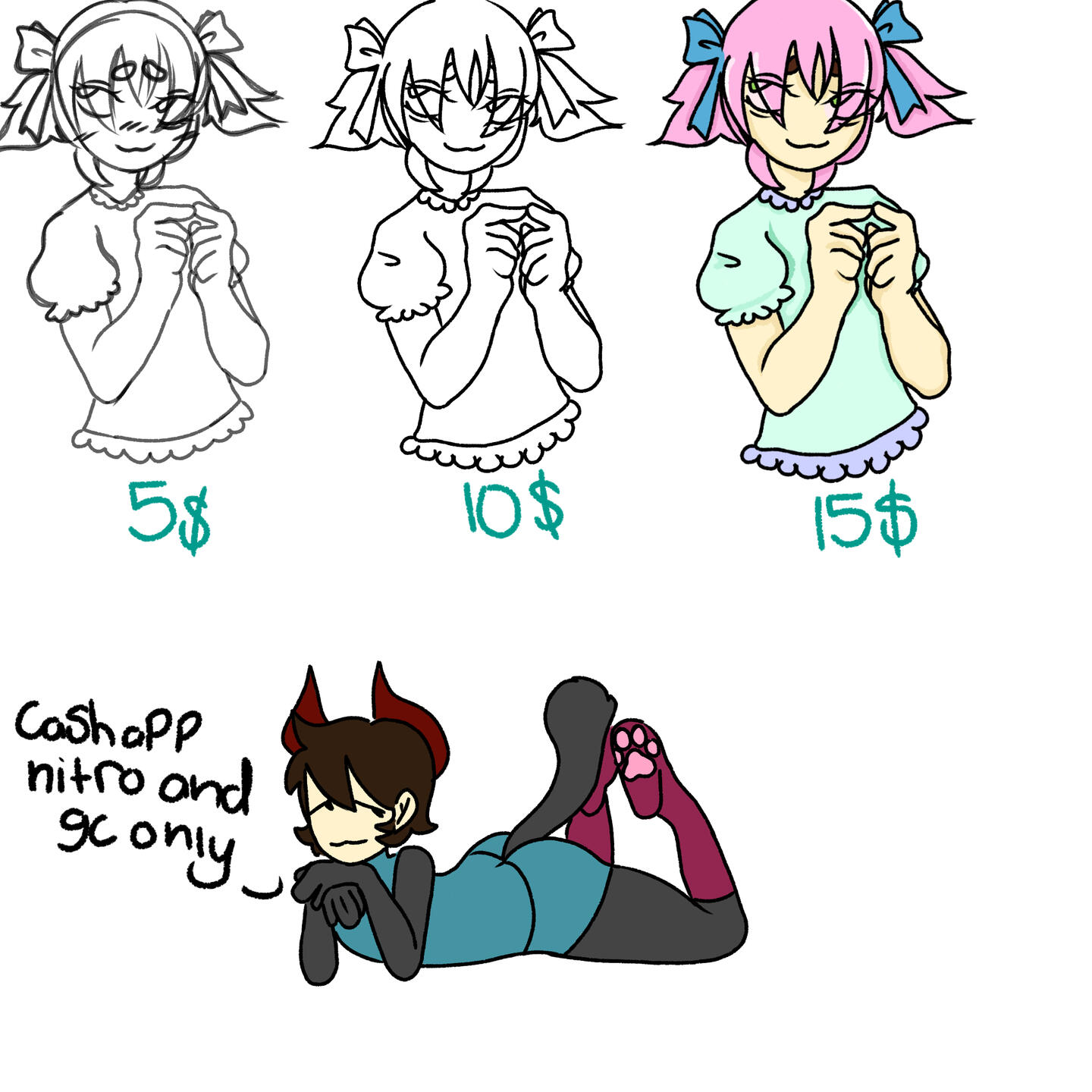 methods of payment, I take many payment options that vary from time to time and my wants and needs but here are the few I offer at the moment.. cash app, nitro, robux, PayPal, Amazon gift cards, Uber gift cards and profile decorations
